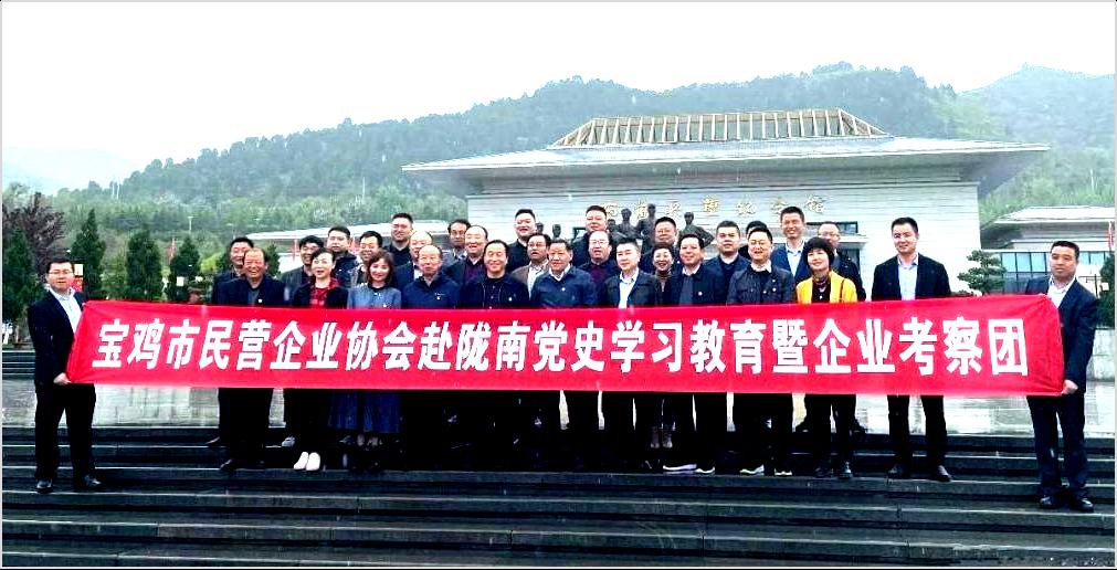 2021年4月23日至25日,宝鸡市民营企业协会组织30多名企业家赴陇南开展党史学习教育暨企业考察活动。市民企协会党委第一书记、执行会长刘一良,市市场监管局副局长、非公党委副书记文生常、市民企协会常务副会长张宝林、宝鸡鹏博房地产开发有限公司党支部书记何长发等参加活动。