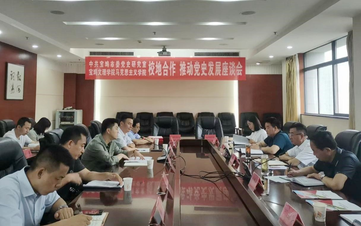 2021年6月16日,宝鸡文理学院马克思主义学院与宝鸡市委党史研究室召开校地合作、推动党史发展工作座谈会,宝鸡文理学院马克思主义学院党总支书记张选朝,马克思主义学院院长、中特中心主任刘晓勇,宝鸡市委党史研究室主任许道平、副主任刘鹏军、李方以及宝鸡市委党史研究室成员、中特中心骨干研究员代表等20余人参加会议。