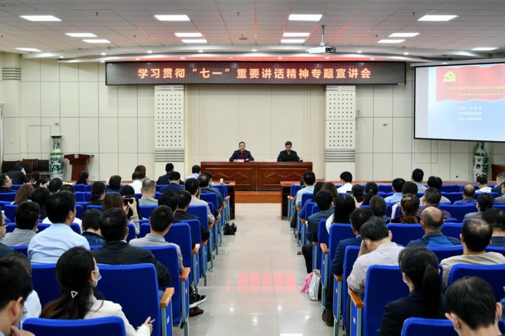 2021年9月18日下午,宝鸡文理学院在高新校区木铎厅举办了学习贯彻“七一”重要讲话精神专题宣讲会,中共陕西省委党校教授、陕西省党的建设研究会副秘书长、陕西省有突出贡献专家岳东峰教授应邀作了《新时代中国共产党人的政治宣言和行动指南》的宣讲报告。中特中心骨干研究员刘晓勇、张选朝、张丽、米文科等20余人参加宣讲会。
