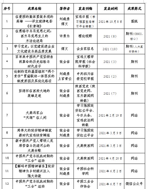 近期,中特中心中国特色社会主义理论体系研究室骨干研究员张全省教授、许勇为副教授、刘晓勇副教授、傅文讲师撰写的理论文章分别在《宝鸡日报》《理论视野》《中国人民大学复印报刊资料·企业家信息》和“学习强国”“中国社会科学网”“陕西党史网”等报刊网络宣传阵地上刊登发表,在进一步加强中国特色社会主义理论体系研究方面取得了新进展。